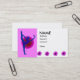 Product: yoga business cards --- Design: yoga silhouette in dancer pose holding a little pink flower --- Background: pink