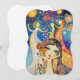 A dreamy, colourful scene features ethereal, elongated beings surrounded by a variety of swirling, vibrant patterns and orbs. The central character, with flowers in their hair, exudes tranquillity amidst a fantastical backdrop.