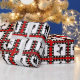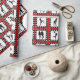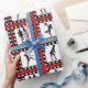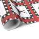 4 different silhouettes of cabaret style dancers printed inside of a light up frame with a red brick background on gift wrapping paper.