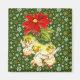Dancing Baby Angels hanging from a Poinsettia flower with gold and white snowflakes on green background for a pretty holiday magnet!