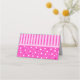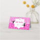 Dancing Ballerina silhouette Birthday place card, Ballerina silhouette on a bright pink and fuchsia background with white polka dots and pink hearts. On top a beautiful ballerina shoe illustration.