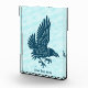 A simple, blue silhouette-like image of a lively raven (Corvus corax) done in Norse-Celtic style, superimposed on a snowy background image. Customise by adding your own text.