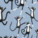 Dancing Cat Pattern Blue Wallpaper
