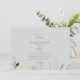 Botanical daisies and foliage Wedding Invitation. Light Sage Background. No Parents listed. Gold text.