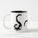 This mug features three lively, playful black dancing dragons set on a silver metallic background with black trim.