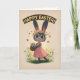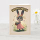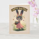 This adorable Easter card features a sweet dark-furred baby bunny in a pink dress, wearing a flower crown and carrying a basket of colorful eggs. Surrounded by butterflies and soft meadow blooms, the illustration blends whimsical, storybook charm with warm springtime textures. Perfect for kids, families, and anyone who loves cute, uplifting Easter art. Printed on premium cardstock for a delightful seasonal keepsake.