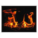 This photo print depicts the energy of fire in a wood burning stove. The orange, gold and yellow flames appear as joyful dancing characters. They are set off by a black background.