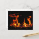 This postcard depicts the energy of fire in a wood burning stove. The orange, gold and yellow flames appear as joyful dancing characters. They are set off by a black background.
