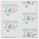 Fabric with a whimsical Christmas scene. Happy forest animals dancing around a decorated Christmas tree.