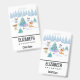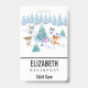 Personalised name badge with a whimsical Christmas scene. Happy forest animals dancing around a decorated Christmas tree.