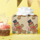 An illustration of a happy dancing gingerbread man with a top hat and a candy cane. During Christmas celebrations, gingerbread and candy cane are always present. Baking a gingerbread is a way for bonding with the family and making children happy.