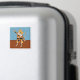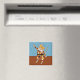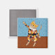 A plump, smiling kitty strikes a dance pose on this cute magnet. The beige-coloured kitty is dressed in a colourful Harlequin's costume in shades of orange, blue, yellow and red. The look is completed by a white lace ruff and broad black belt with a large gold buckle. The cat also wears a yellow masquerade-type mask. He's dancing on a wood tiled floor in front of a blue background filled with musical notes. This design is bound to bring a smile to the face of any cat lover. From my original digitally created mixed media image.