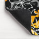 Tropical vintage print inspired by the aloha shirts of the sixties and the seventies. A colourful blend of oranges transitions through the hibiscus flowers on a background of black, grey & white. These designs come in several colorways.