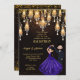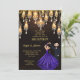 Gold sparkling chandeliers Indian wedding reception invitation template instant download. Dancing cute bridal couple, gold glitter.