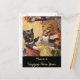 Cute vintage artwork showing three kittens in clothes dancing. Black band below with year script "Have a Happy New Year"