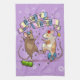 A cute mouse kitchen towel or tea towel. Use "Personalise this template" to tweak the "PARTY TIME!" text and create a unique, customised item. Featuring two mice in party hats, dancing as confetti and a ribbon fall around them, with balloons scattered on the floor.