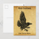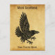 A simple silhouette-like image of a lively raven (Corvus corax, done in Norse/Celtic style, superimposed on an old paper background image, giving it a medieval feel. Customizable text reading "Wick Scotland" appears at the top. You may further customize by adding additional text at the bottom.