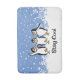 Dancing Penguins Design Bath Mat with customisable background colour and text.