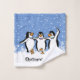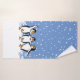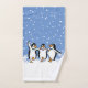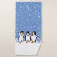 Dancing Penguins Design Bath Towel Set with customisable background colour and text.