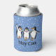 Dancing Penguins Design Can Cooler with customisable background colour and text.
