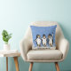 Dancing Penguins Design Throw Pillow with customisable background colour and text.