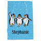 Dancing Penguins Design Mediu Gift Bag with customisable background colour and text on both sides.