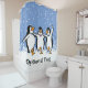 Dancing Penguins Design Shower Curtain with customisable background colour and text.