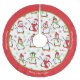 Celebrate the holiday season with this custom festive red and green penguin pattern tree skirt. Treet skirt has fun dancing penguins, snowflakes, and the text Merry Christmas (or text of your choice). Add your family last name for a special touch!