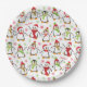 Dancing Penguins Red and Green Pattern Christmas Paper Plate
