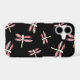One for nature lovers with pink dragonflies flying around on a black background. This dragonfly pattern was created from my original glass painting ©Annabel Potter