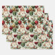 This is a festive Christmas wrapping paper design featuring a repeating pattern of vintage-style holiday characters. The main elements of the design are: