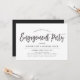 A unique Engagement Party invitation featuring dancing script style lettering followed by your unique details in black and white.