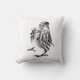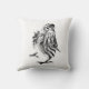 This throw pillow features a little Pine Siskin dancing for joy. He is sketched in black on a white background. The image is repeated on the back.