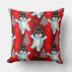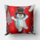This cute red Christmas throw pillow will be sure to add a colourful and festive touch to your holiday decor this Christmas. The design features a whimsical, dancing snowman with top hat and striped scarf, surrounded by silver Christmas trees and snow on a red background. The other side features a smaller pattern of snowmen for a bit of variety, so you can flip it over whenever you feel like a change.