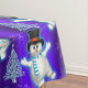 This cute blue Christmas tablecloth has a pattern of joyful, happy dancing snowmen. They're all dancing in the snow with Christmas trees all around them, and a pretty blue background behind them. This colourful, festive tablecloth will add a splash of colour and holiday style to your home decor for the Christmas holiday season.
