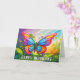 This creative and cute birthday greeting card features an illustration of a butterfly, dancing on a beautiful day. You are invited to adjust all the available options as you'd like.