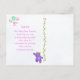 A purple teddy bear princess dressed up in a lovely yellow jewelled crown and pink, blue and green flowers is dancing through the flowers and holding a bunch of colourful balloons with the word HAPPY on them. This happy birthday postcard will bring a smile to a special girl on her 5th birthday. Personalise with her name to make it extra special. Original design by Anura Design Studio.