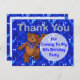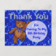 Cute little teddy bear dancing through blue lights with glittery thank you letters is a fun thank you for coming to my 6th birthday party post card. Text on from and back of the card may be customised to fit your needs. Original design by Anura Design Studio.
