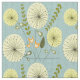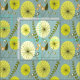 Mid-century modern inspired yellow dandelion or flower clocks with green green leaves on a light green background.