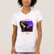 Absolutely love the design. The artist has put some thought into presentation I particularly like like the way the dandelion seeds fly outside the frame of the art. The blue is a vibrant colour that shows up well on the grey shirt. Printing is very clear with the details of the image clearly seen. Love the colours. Great art