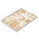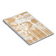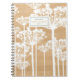 Fun and retro personalised notebook featuring white dandelion pattern on wood background.