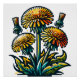 A simple illustrated dandelion that has gone to seed and is blowing away, in black.