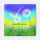 Pictured are painted Dandelions weeds with the seeds blowing in the wind with a happy mothers birthday text you can personalise if you wish.
