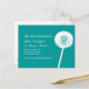 Modern, minimal elopement postcard in white and teal with a dandelion.