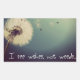 This inspirational design features a stylised photo of dandelion "wishes" floating skyward. Text reads "I see wishes, not weeds..."