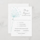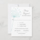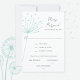 A wedding RSVP card with a rustic theme of a hand-drawn flowers to resemble a dandelion in a sea glass green colour, including an entrée meal choice selection for the guests of beef, chicken or vegetarian.