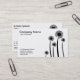 A stylish modern business/profile card with an simple but attractive arrangement of dandelion clocks. Company and address details on the front with name and other contact details on the back.