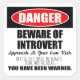 Hey you, the introvert! You're at a party, you're doing your best to stay invisible, but suddenly someone looks like they might approach you. Danger! But thank goodness, you remembered to stick on your Danger Beware of Introvert sticker. You turn to face the intruder, and as they turn and walk away, you breathe a sigh of relief. Human contact averted!