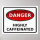 Danger - Highly Caffeinated - warning sign styled design. Makes a great office door poster.