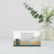 Inspirational quote business card depicts a cup setting on a ledge, looking out at a beautiful fall foliage landscape. It features Bible Verse Daniel 2:21-22, "He changes times and seasons; he removes kings and raises up others. He gives wisdom to the wise and knowledge to the discerning. He reveals deep and hidden things; he knows what is in the darkness, and light dwells with him."